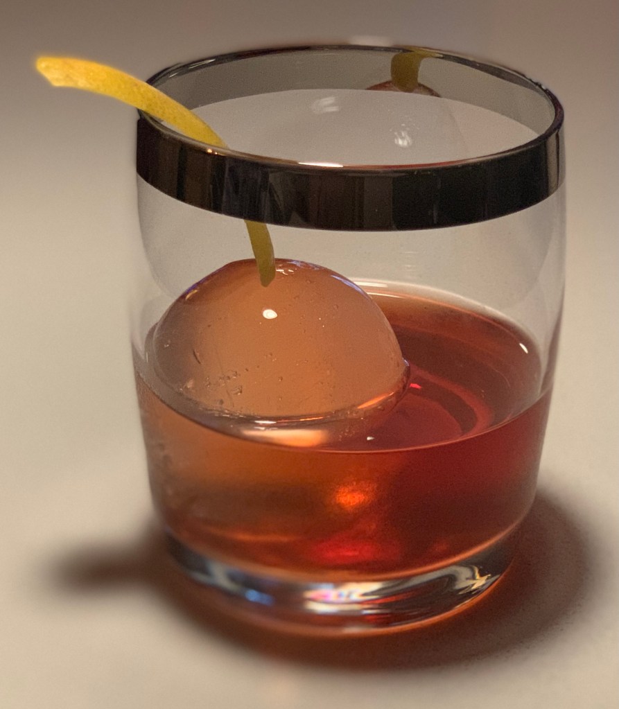 This was the house old fashioned at 67 Orange Street. Its a great twist on an old fashioned because it uses the benedictine to add some sweetness and flavor. It really gives a different approach to an old fashioned in a simple way. The flamed orange peel adds a touch of smoke, but I think its mainly for performance.